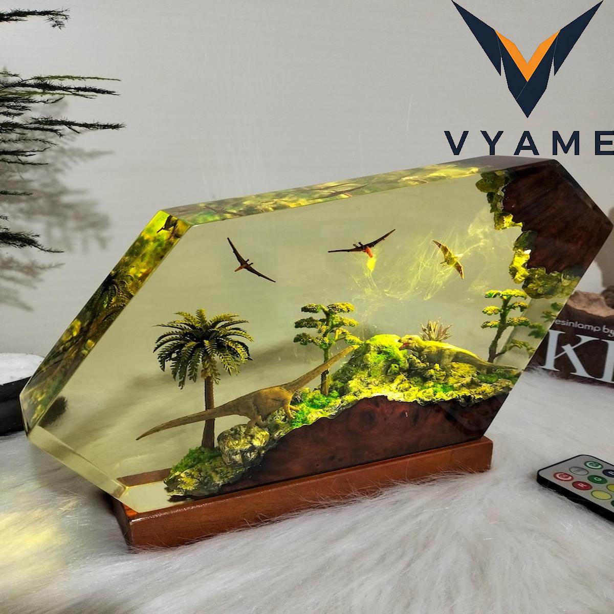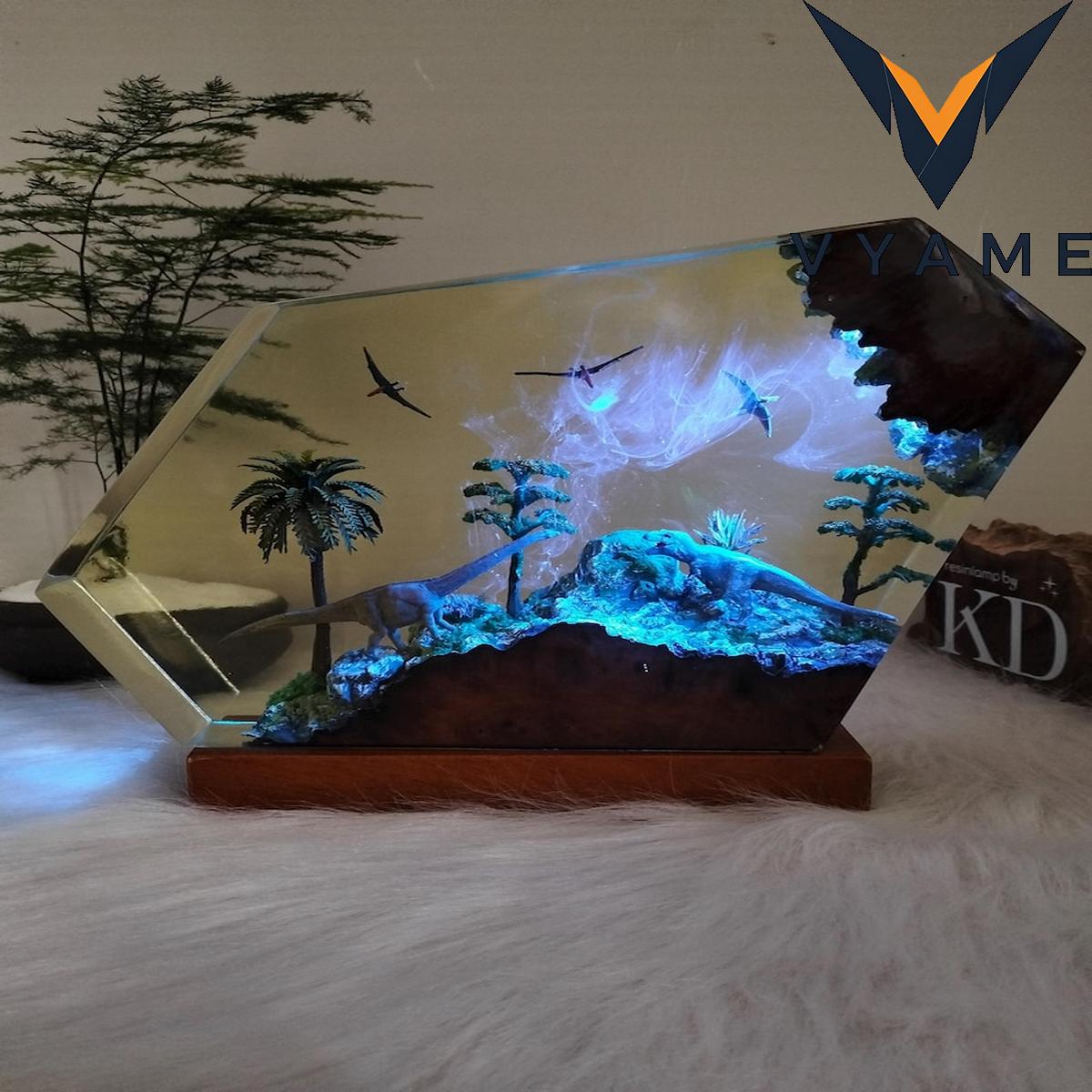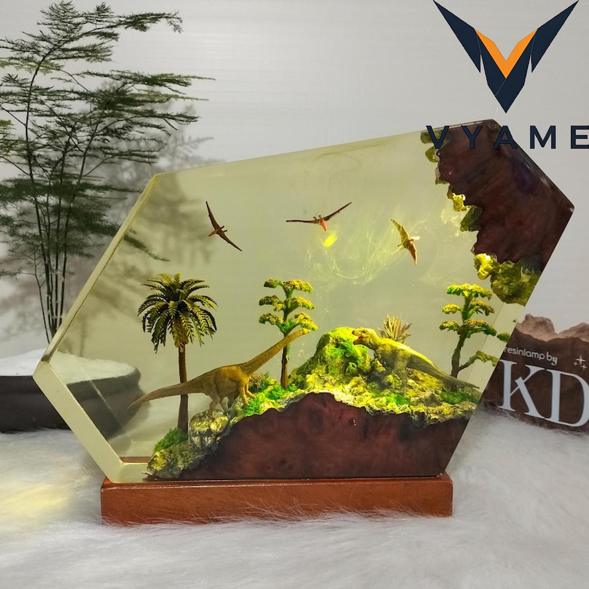 đ Epic Dinosaur Battle Resin Lamp _ Handmade 3D Prehistoric Night Light _ Meaningful Gift for Dinosaur Lovers