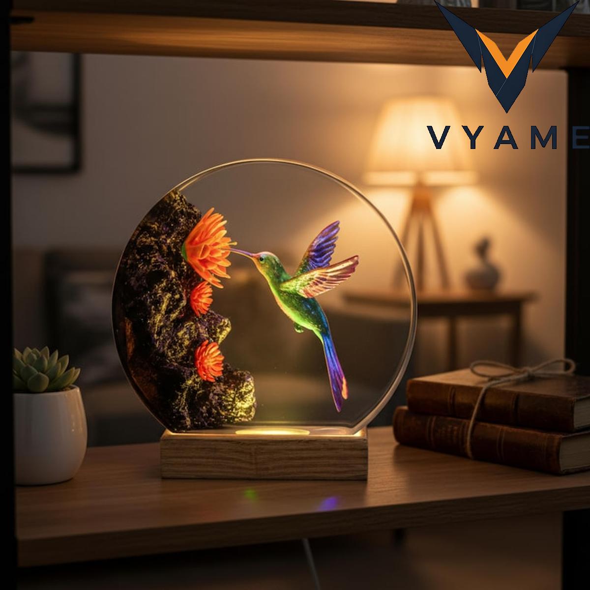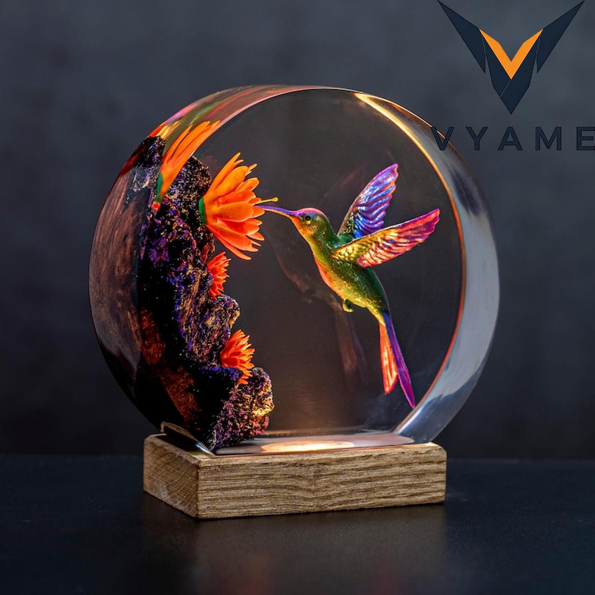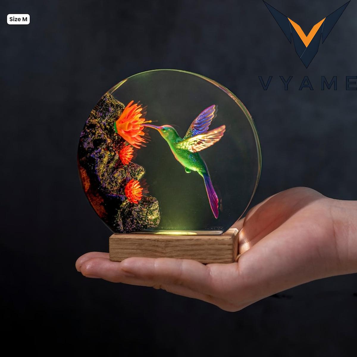 🔍 Hummingbird Resin Night Light _ Handmade Round Epoxy Art Lamp _ Unique Meaningful Gift for Nature Lovers