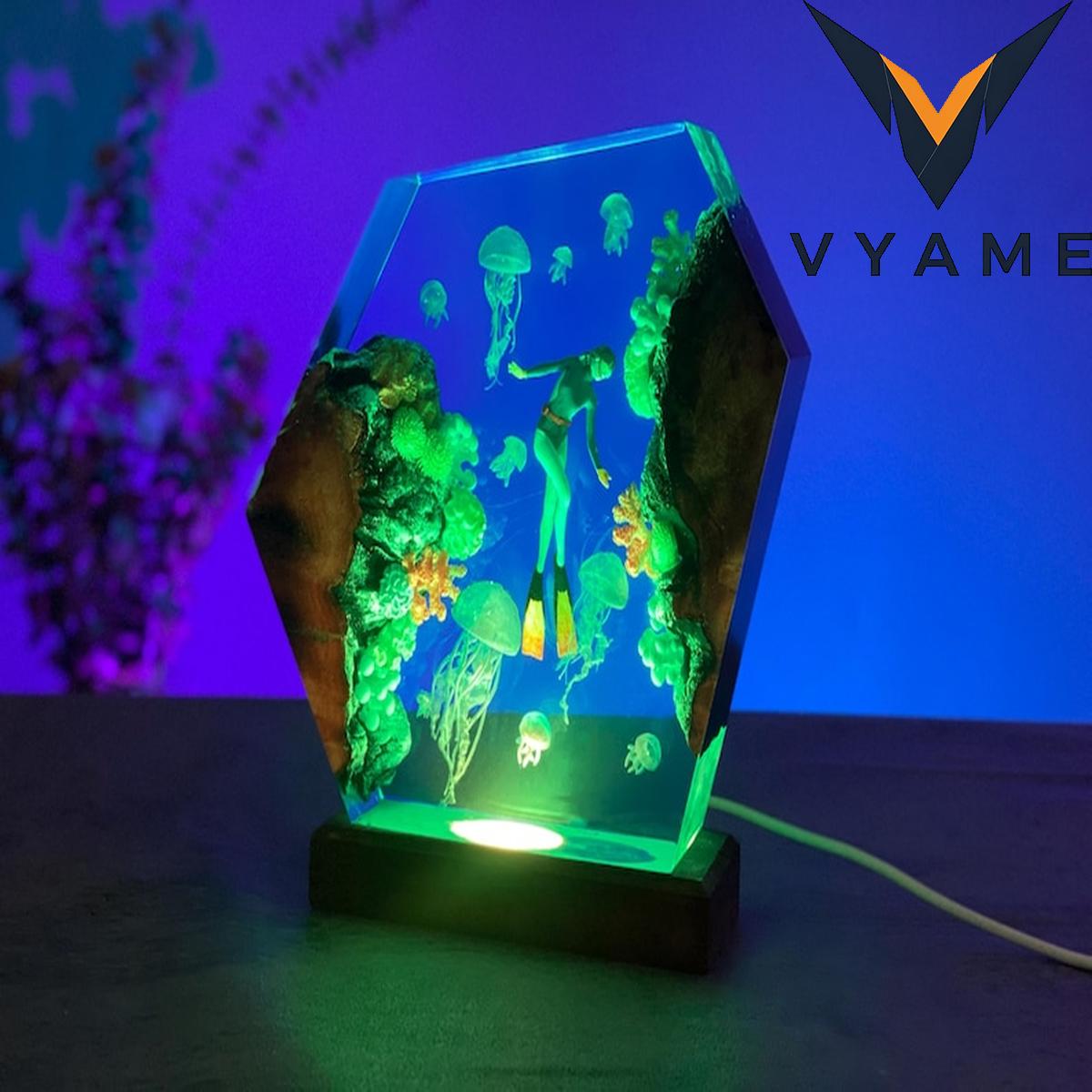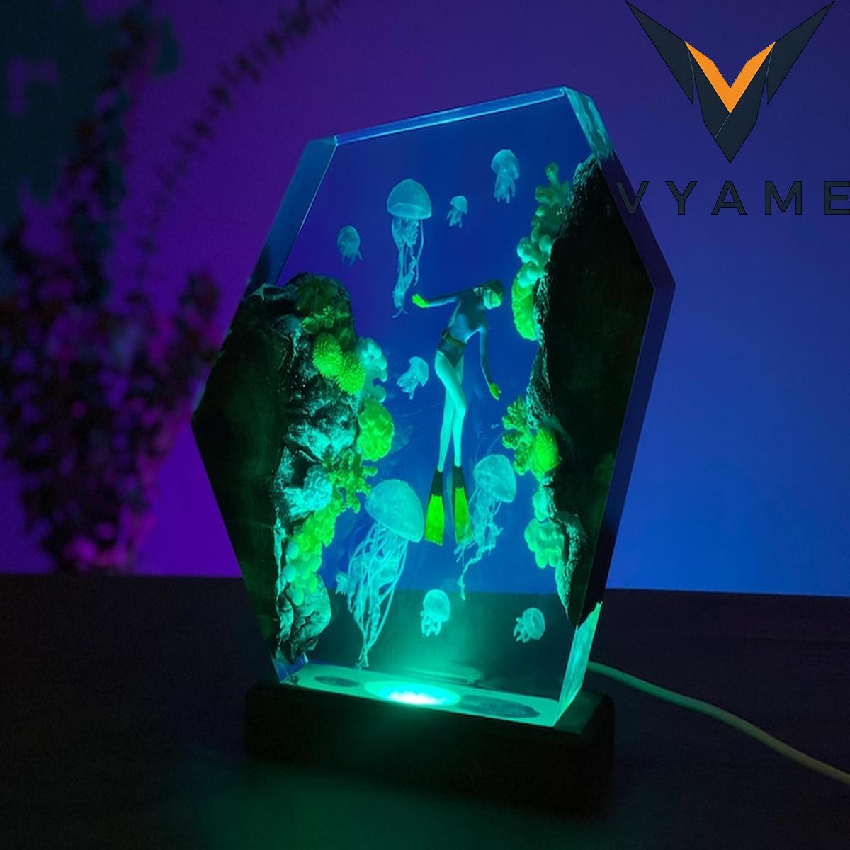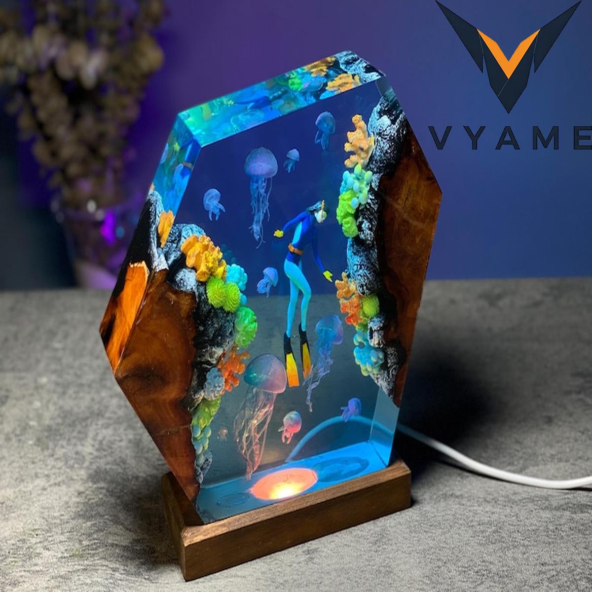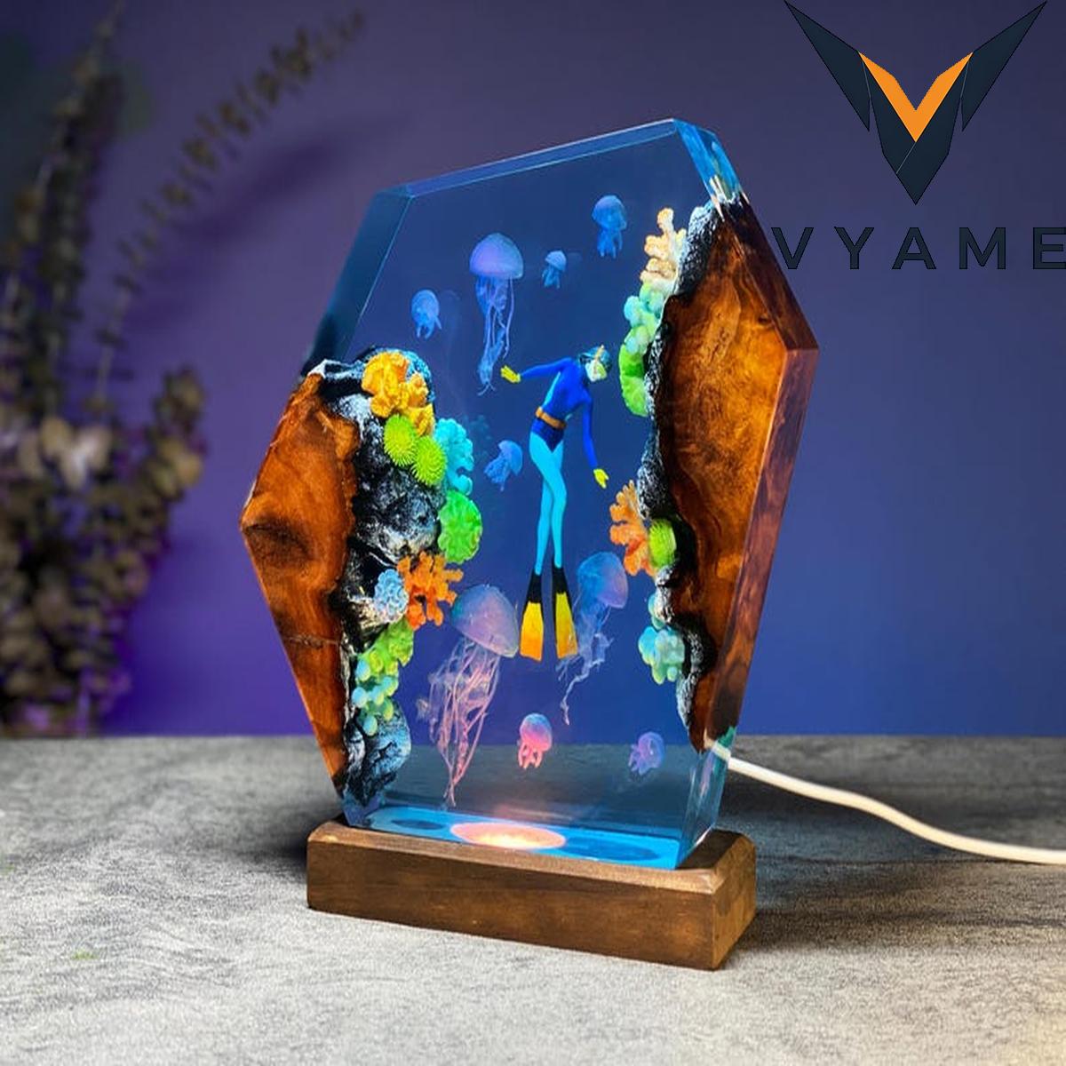 đ Personalized Diver & Jellyfish Resin Lamp _ Handmade Ocean Epoxy Night Light _ Unique Meaningful Gift for Ocean Lovers