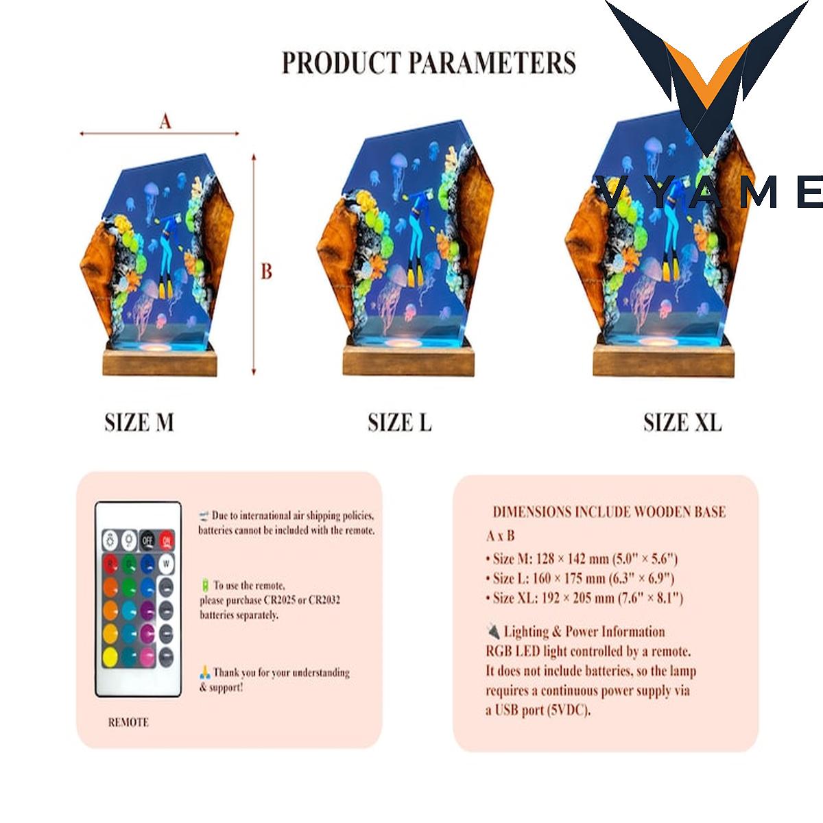Immerse yourself in the tranquil beauty of the underwater world with our Personalized Diver & Jellyfish Resin Lamp. This handcrafted masterpiece captures a breathtaking moment of explorationâa lone diver drifting amongst ethereal, glowing jellyfish in a vast, blue abyss. When lit, the lamp transforms your space into a peaceful sanctuary, evoking the mystery and calm of the deep ocean. It is more than just a light; it is a window into a silent, magical world that inspires wonder every time you look at it.